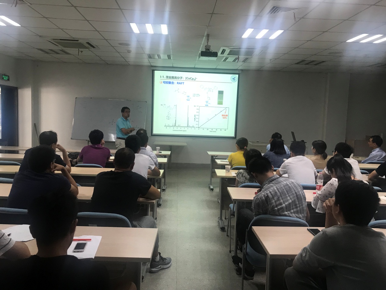 闫教授主要介绍了近年来受到了广泛关注的有机金属聚合物。选用了一类可有机修饰的多金属氧簇为金属基构筑基元,通过超分子聚合的方法构筑了杂化超分子聚合物,并较为系统地研究了其超分子和高分子构筑、自组装行为和功能化的研究。