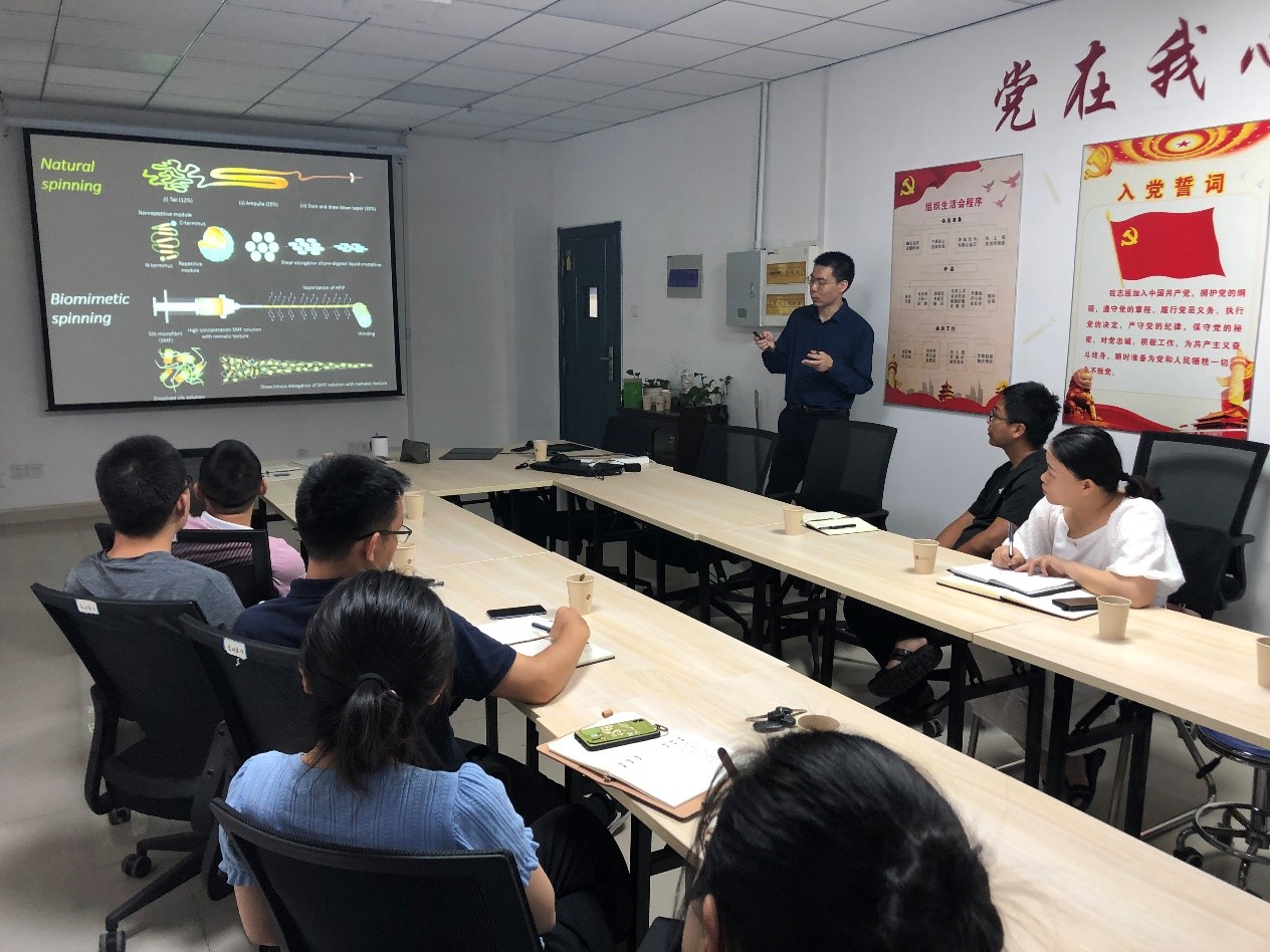 2021年6月8日,上海科技大学凌盛杰研究员应邀前来我中心进行学术交流。并作了题为《动物丝的结构表征与器件设计》的学术报告。本次学术交流由中心郑可副教授主持,参会人员有林学与园林学院及生物质分子工程中心相关研究方向的老师和同学。