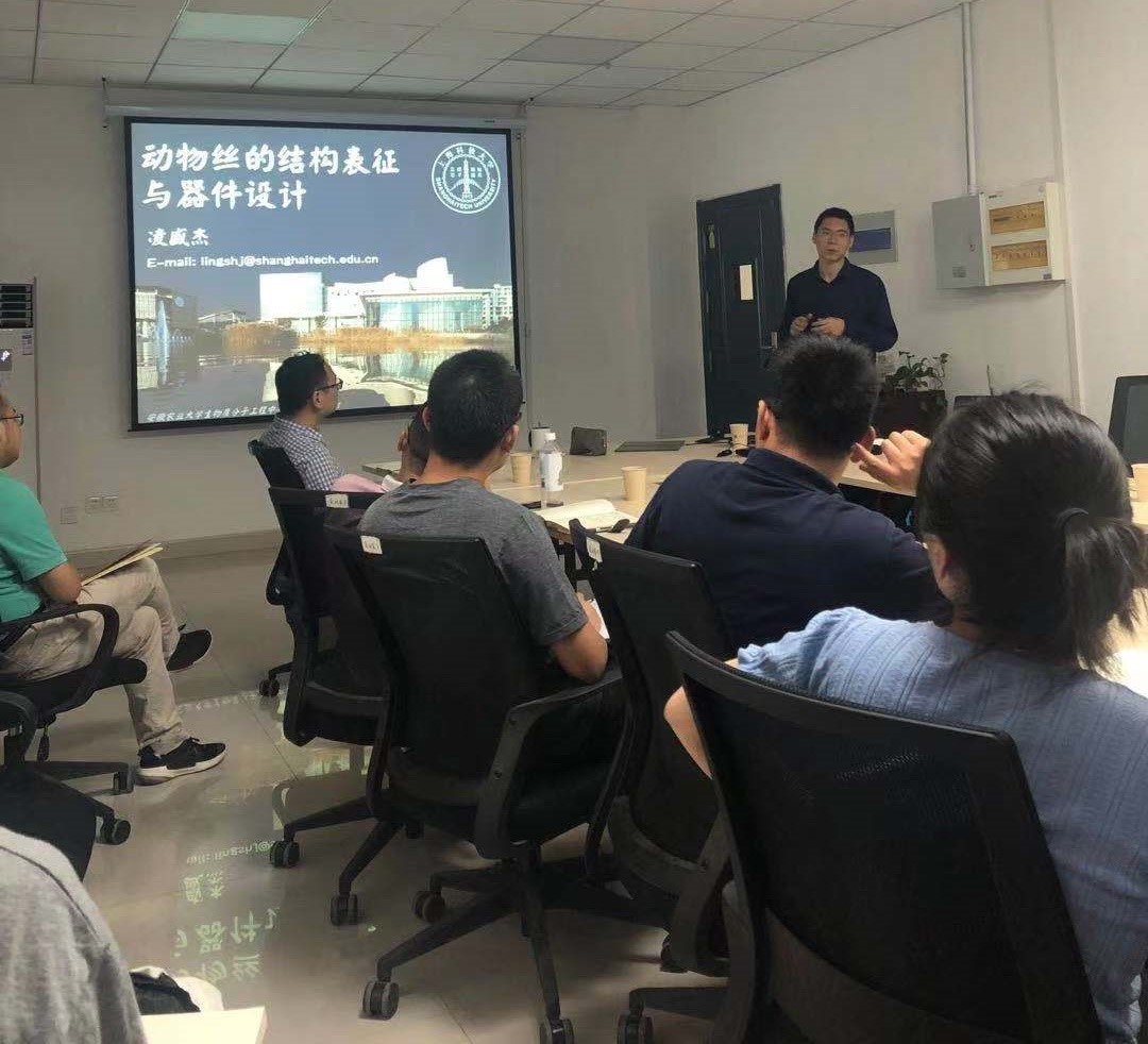 此外,凌盛杰研究员以动物丝的多尺度设计为灵感,借助动物丝独特的力学性能优势,还展示了团队及合作者还开发的一系列仿生方法对动物丝及丝蛋白进行功能化、器件化设计,进而制备了一系列结构、功能仿生材料。以期激发同学对天然生物材料的兴趣。报告结束后,凌盛杰研究员还一一解答了与会老师以及学生提出的各种学术问题,并鼓励广大师生对于科研保持热情,积极进取。