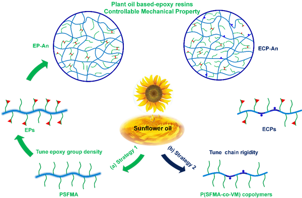 生物质高分子材料团队近期在植物油基高分子领域取得进展。研究论文“Two Strategies to precisely tune the mechanical properties of plant oil-derived epoxy resins”,发表于Composites Part B: Engineering: Engineering,该研究工作得到了审稿人的一致好评。本研究通过将植物油转化为环氧聚合物,进一步固化后得到性能优异的植物油基环氧树脂。并且,通过调整环氧聚合物的环氧密度和主链刚性,可获得一系列从弹性体到硬质塑料不同性能的环氧树脂。该研究的意义在于,探究了环氧聚合物特性与环氧树脂的关系,提供了制备高性能环氧树脂的新策略和调控植物油基环氧树脂性能的方法,为了高性能的植物油基环氧树脂提供了新的思路。